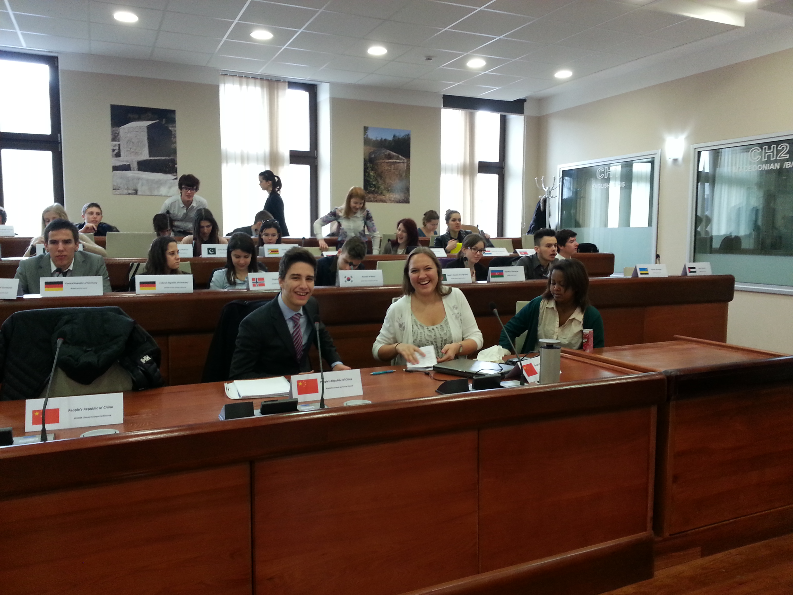 I dag hadde vi generalforsamling, der vi stemte over resolusjonane som hadde passert i dei ulike kammera. Her er folkerepublikken Kina benka inn på første rad (den tomme plassen er min), med Tyskland, Noreg og andre i bakgrunnen.