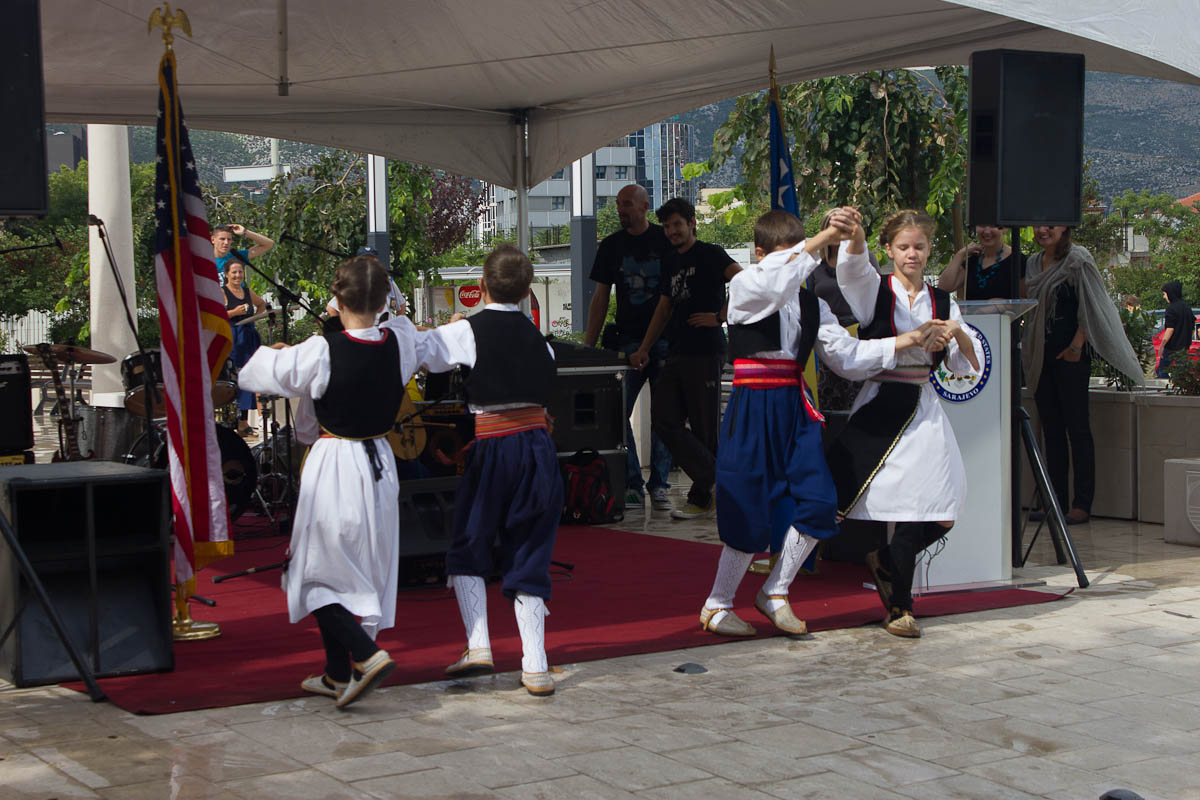 Amerikanarane hadde leigd inn eit rockeband og ein gjeng dansarar, sett opp digre pyntekostruksjonar og til og med trykt opp vifter med amerikanske og lokale flagg på. Representanten for ambassaden kom køyrande i ei bilkortesje, gjekk på talarstolen, heldt ein tale (på lokalt, men med ein så flaut sterk amerikansk aksent at det var tragisk å høyre på), fekk ein livvakt til å springe opp til han med ein paraply fordi det byrja å regne og sprang rett i bilen attende til Sarajevo. Dei frivillege i bodene pakka saman, og følte truleg at dei hadde kasta vekk dagen – om enn på eit naudsynt onde.