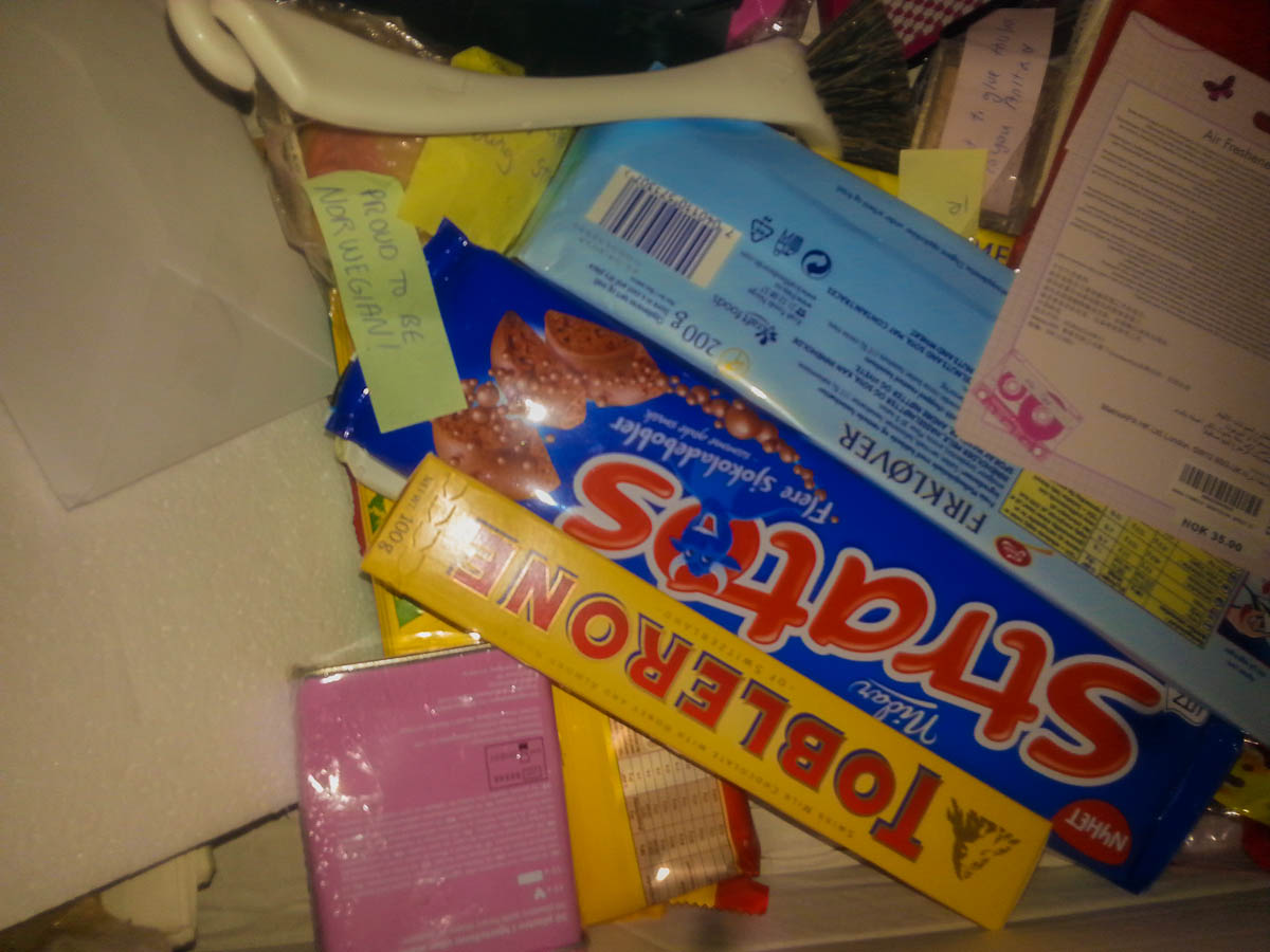 Vår andreåring Nora har sendt sjokolade og kjærleik