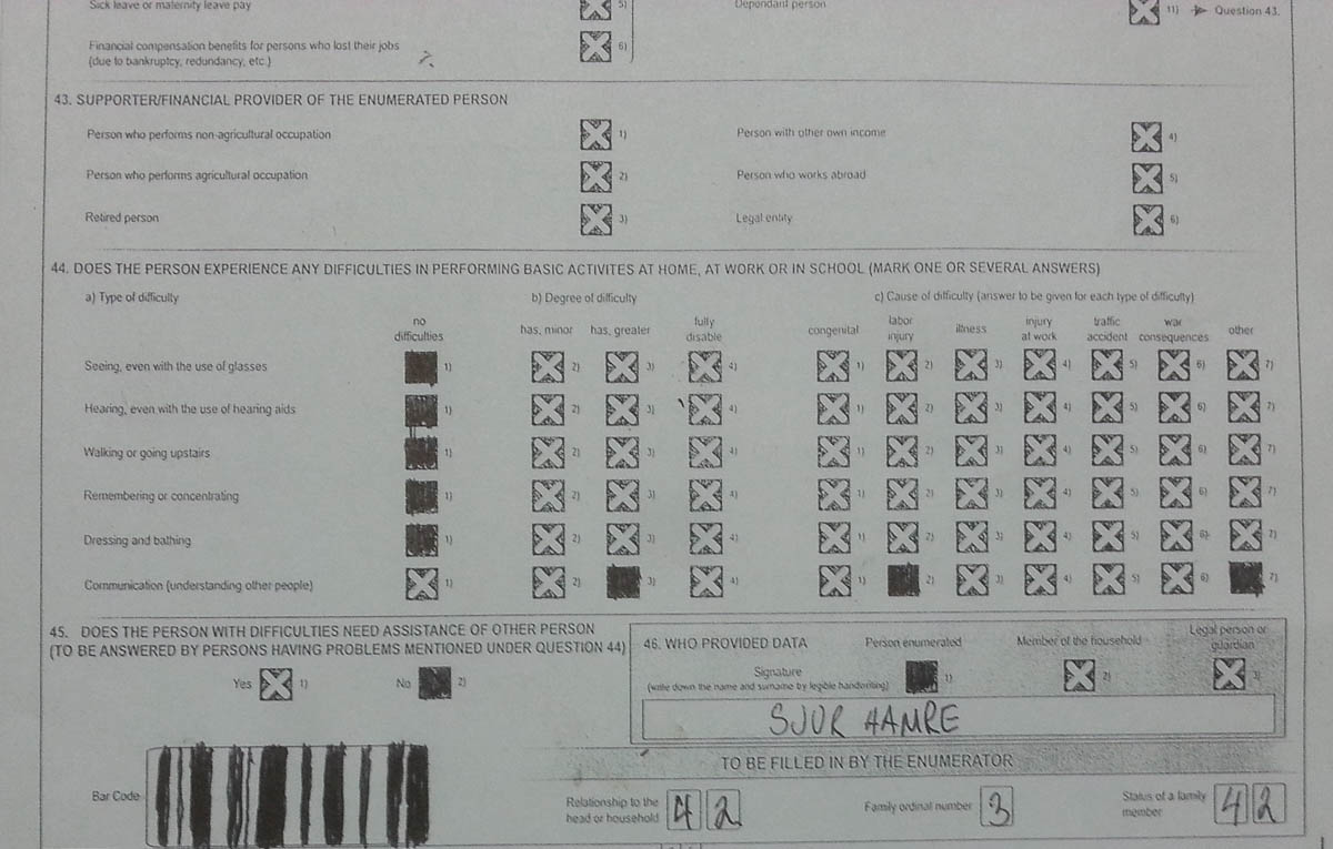Den beste delen av skjemaet? Den som ber deg fylle ut strekkoden din.Folket skal teljast her i BiH, og slikt tek ein ikkje lett på. Førre gong det skjedde var i 1991, då landet framleis var del av Jugoslavia (høgkommisæren for flyktningar gjennomførte rett nok ein uoffisiell teljing i 1996, men den er ikkje annerkjend). Etter det har ein gjennomført rimleg kontroversielle estimat med jamne mellomrom. Eg prøvde å lese om «the importance of census», men den lenka fungerte diverre ikkje. Om ikkje anna veit eg at resultata vil bli nytta som politisk kjøttvekt i den evige kjeklinga mellom dei tre etnisitetene. Alltid godt å vite at ein bidreg til ei god sak.