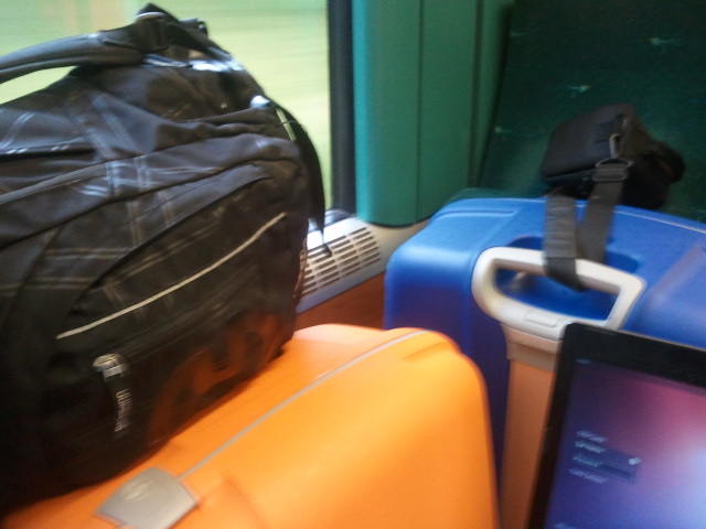Amalie, Beate og Teodorine vakkert lina opp pÄ eit lokaltog pÄ veg mot Oslo. Ja, saman tok vi opp totalt fire sete