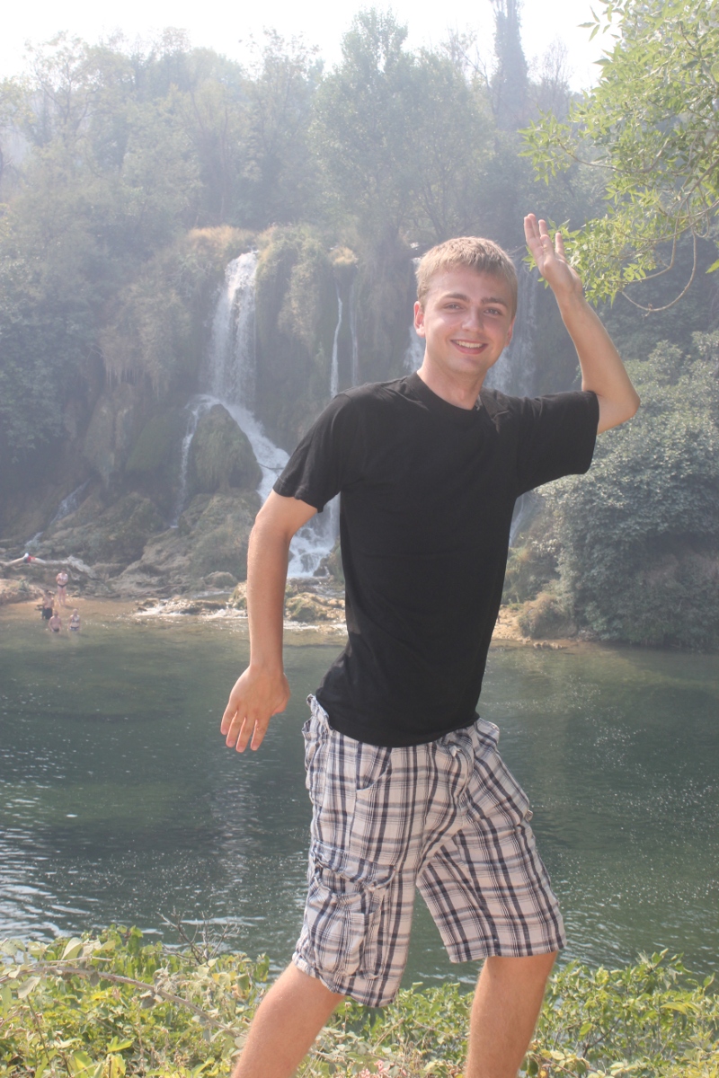 Det er dagen etter opningsseremonien, og vi har vore pÄ vÄr fÞrste ekskursjon: til Kravice-fossane! Dei ligg ein time frÄ oss, og, trass i at dei er noko mindre enn Victoria Falls, er dei ganske vakre.